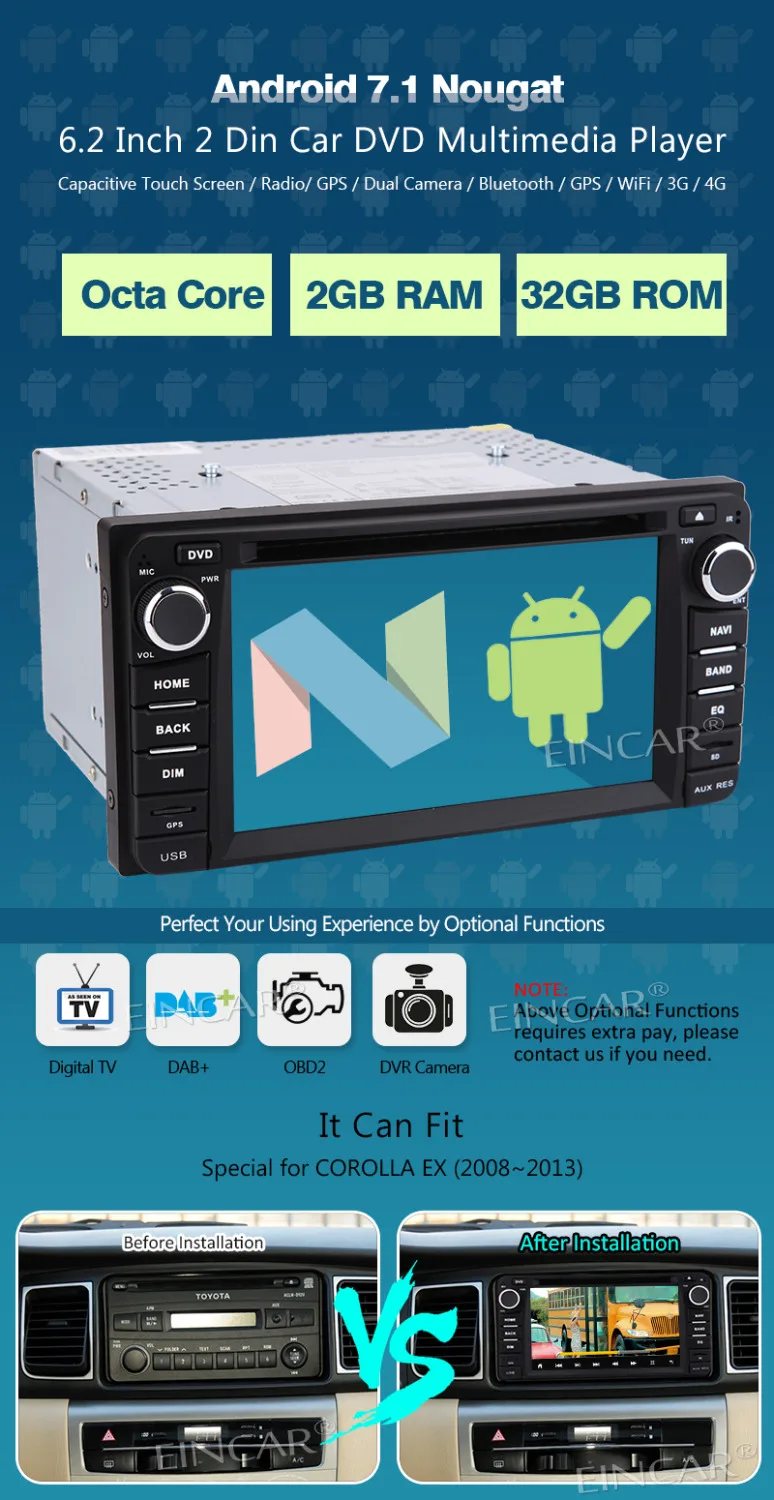 DISCOUNT my personal favorite Eincar 6.2 #039; #039; Android 7.1 Octa Core Car Radio Stereo car DVD Double Din In Dash Head Unit 4G WIFI USD SD OBD2 Fit for TOYOTA RECOMMENDED TODAY