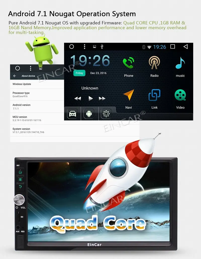 SPECIAL OFFERS Eincar Android 7.1 Car Stereo Radio 2Din Head Unit GPS Navigation Bluetooth WIFI Support 4G Dual CAM IN OBD2 DAB FM AM Receiver one of the best