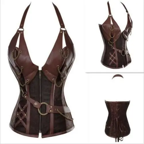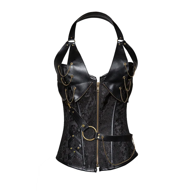 HOT OFFERS Outside China Warehouse Supply Of Goods Europe And America 4 Steel Rib Punk Tight Leather Belt Halter Tailored Clothes C Discount Online BUY Now LIMITED DISCOUNT TODAY