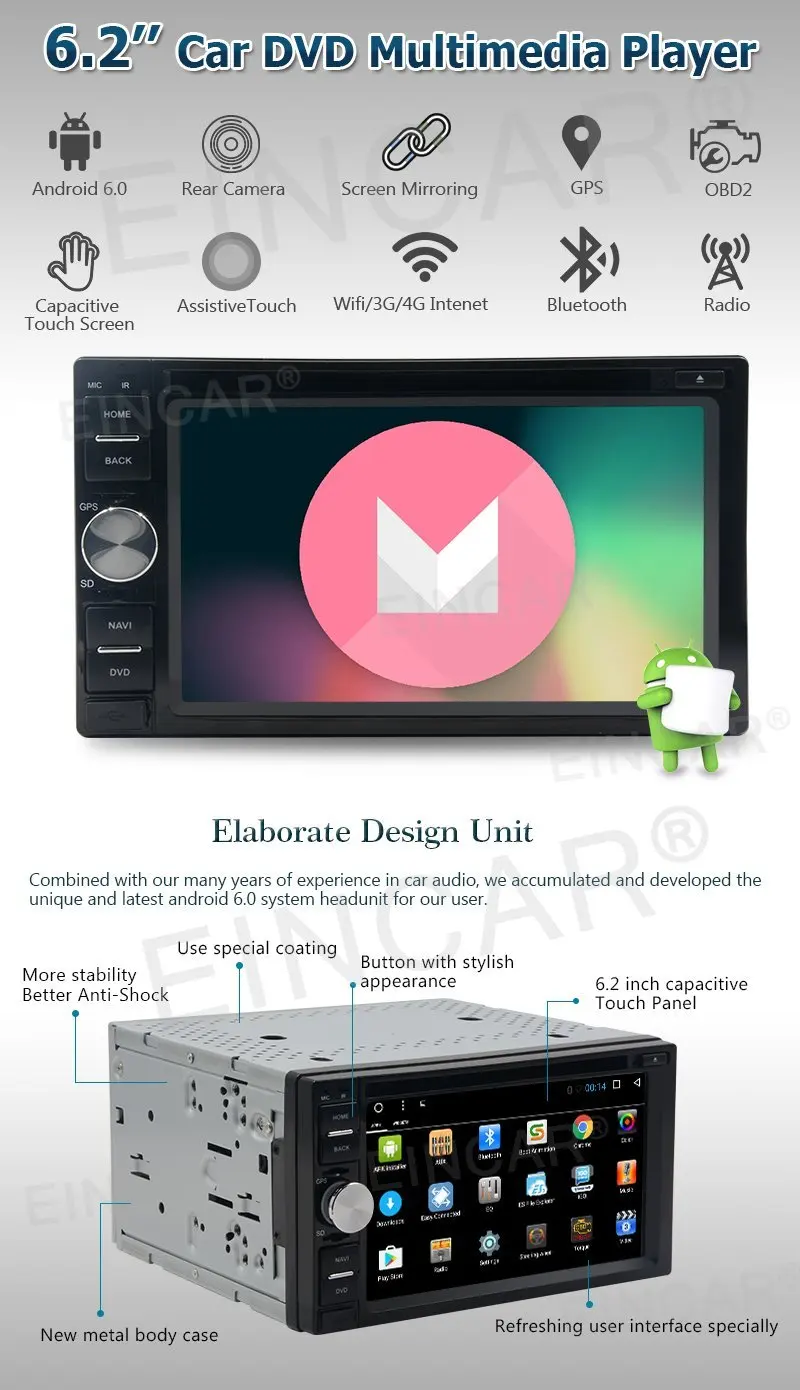 SPECIAL OFFERS 2 Din Android 6.0 Car DVD Player Car Stereo GPS Navigation In Dash Bluetooth Radio Support 1080P Video WiFi Mirrorlink OBD2 SWC Online