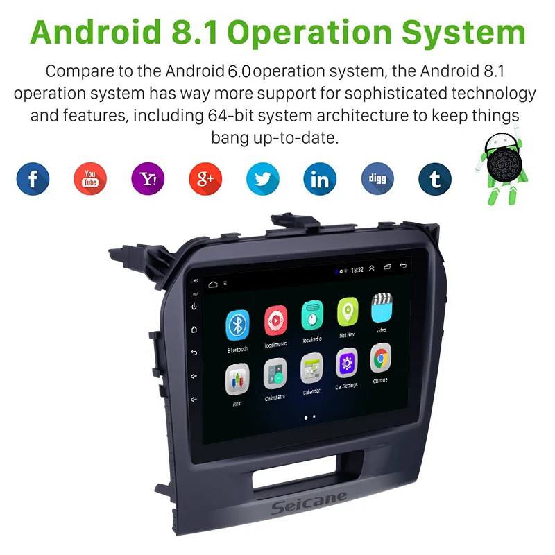 SPECIAL OFFERS Seicane Android 8.1 9 inch Touchscreen 2DIN Radio Bluetooth GPS Navigation for 2015 2016 SUZUKI VITARA support OBD2 Mirror Link Online
